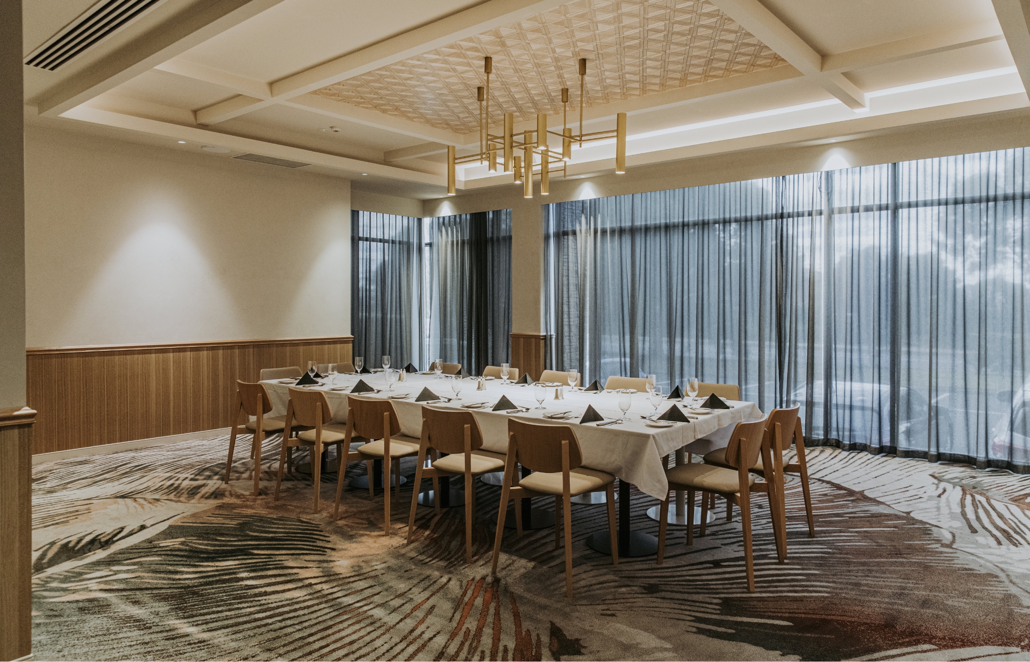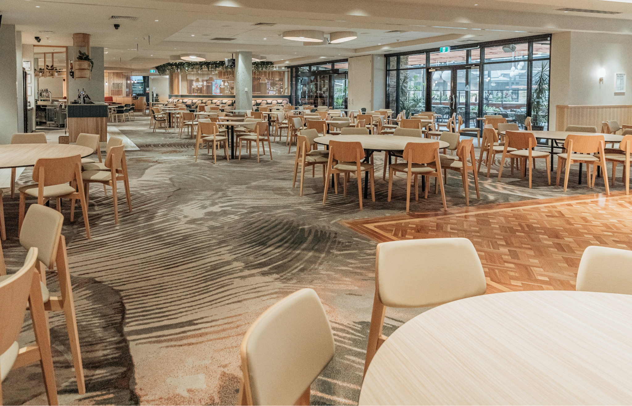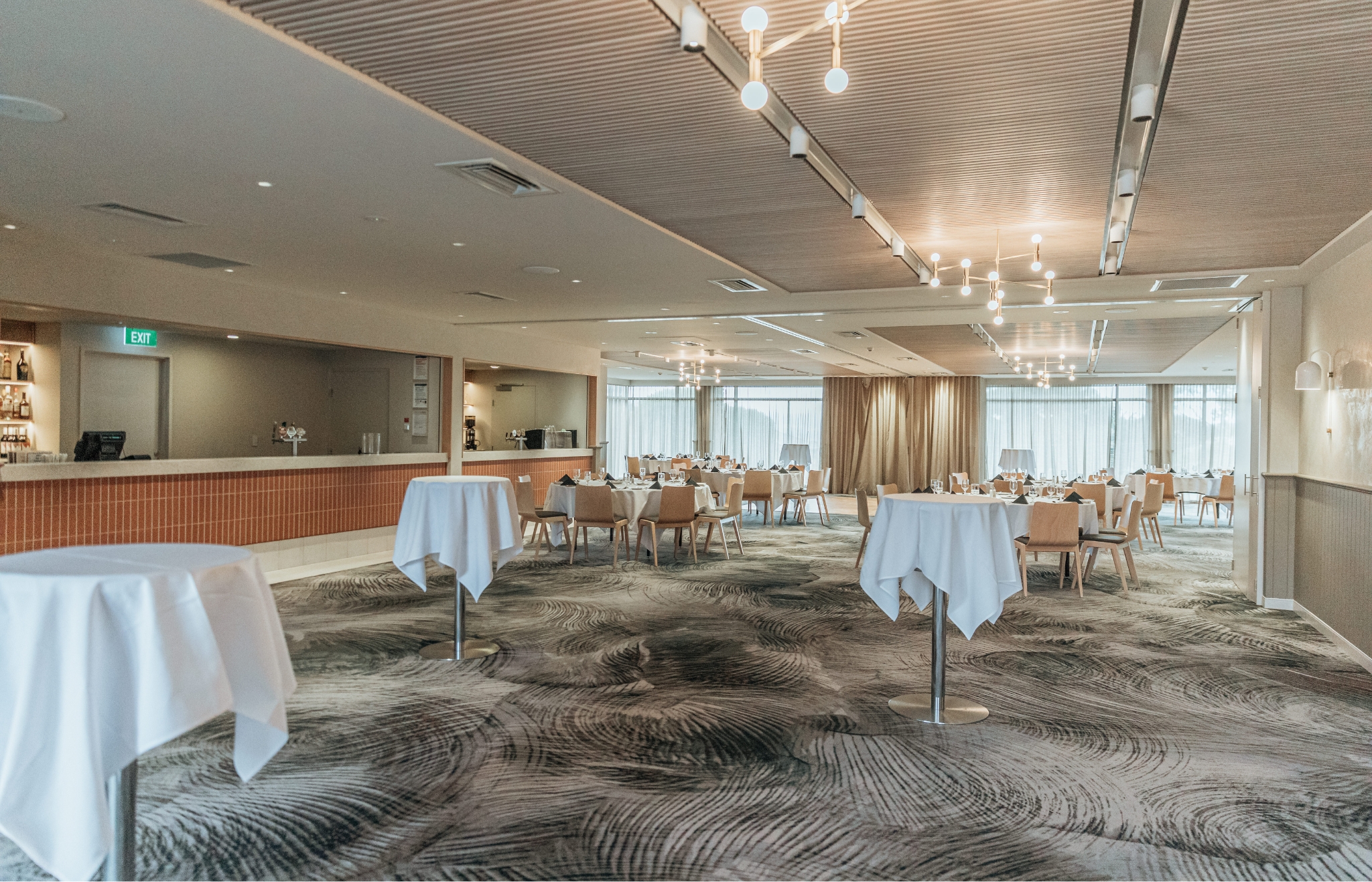 Enjoy the inviting and luxurious atmosphere of Mulgrave Country Club. The bistro area is an intimate space furnished with Signature Studio custom carpet, which features a stunning colour palette of blush pinks and delicate greys.
